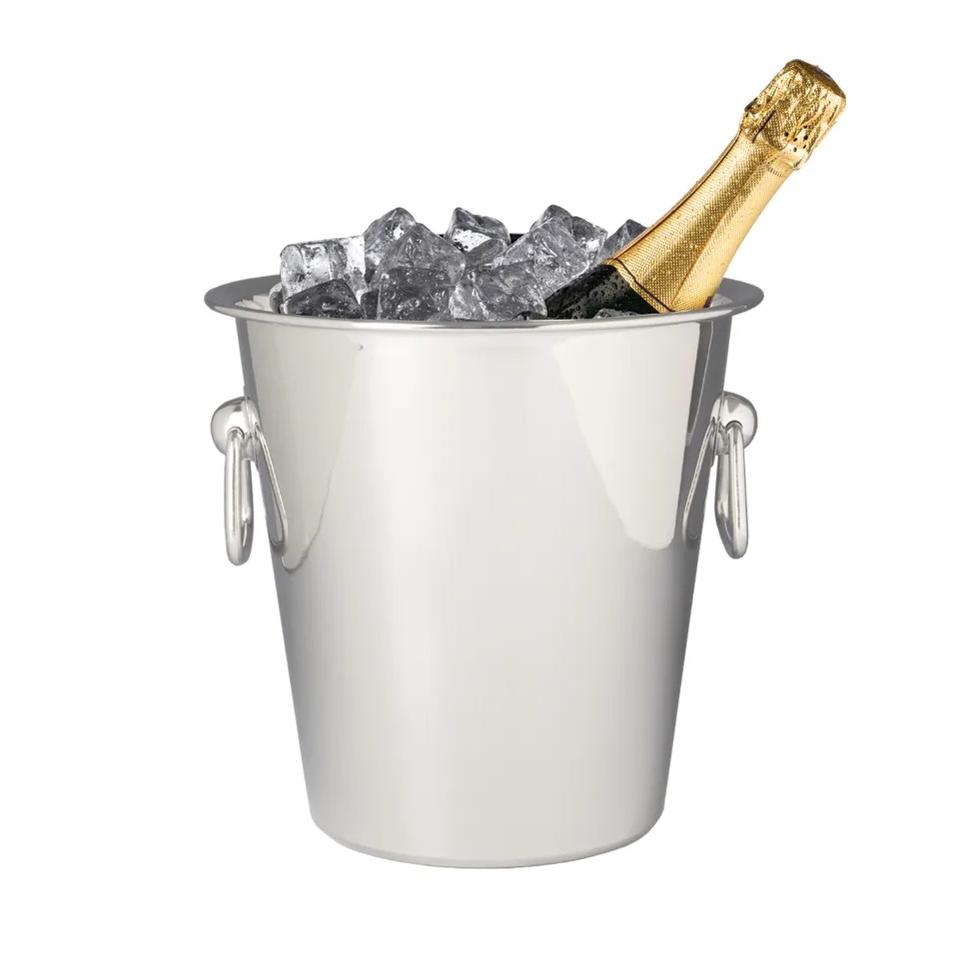 Unique Design Metal Ice Bucket With Ring Handle Silver Color Tabletop Champagne Ice Bucket Bar Ware Beer Chiller