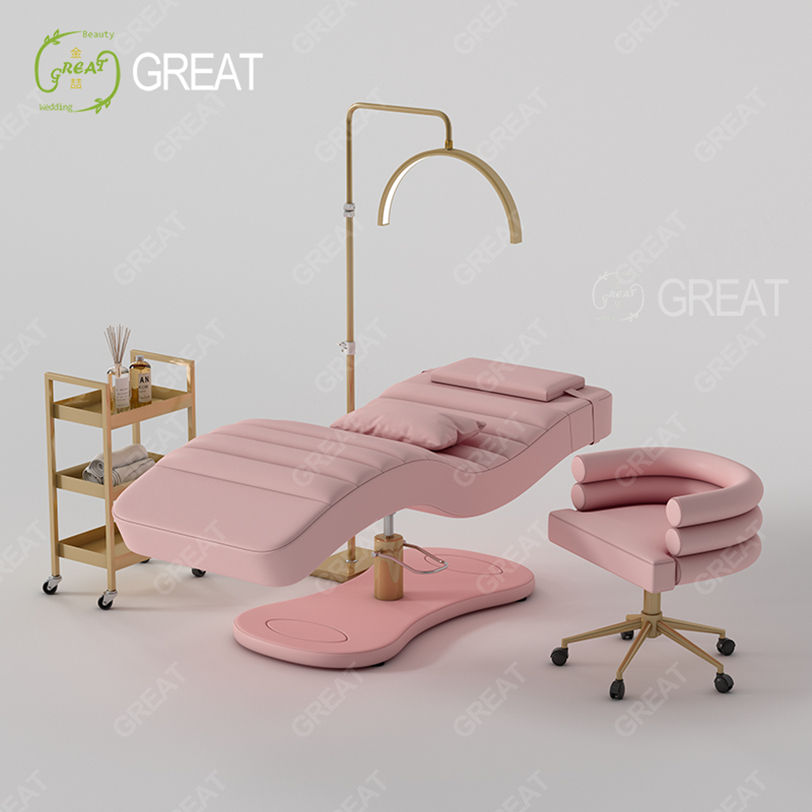 Unique Design Orange Leather Adjustable Height Eye Lash Salon Bed Modern Salon Furniture Set Massage Table Bed with Stool