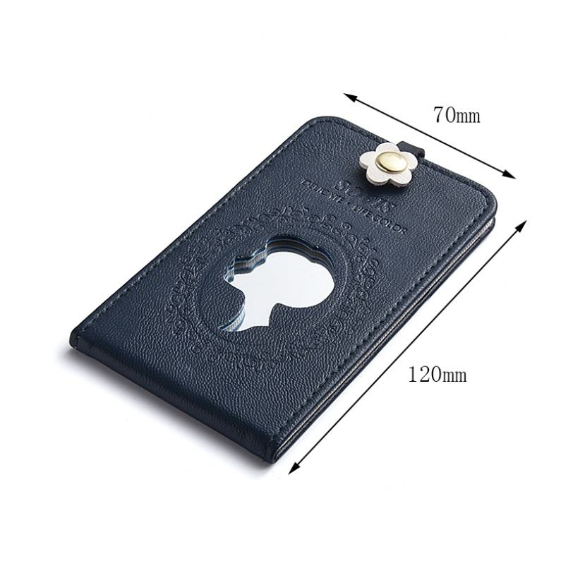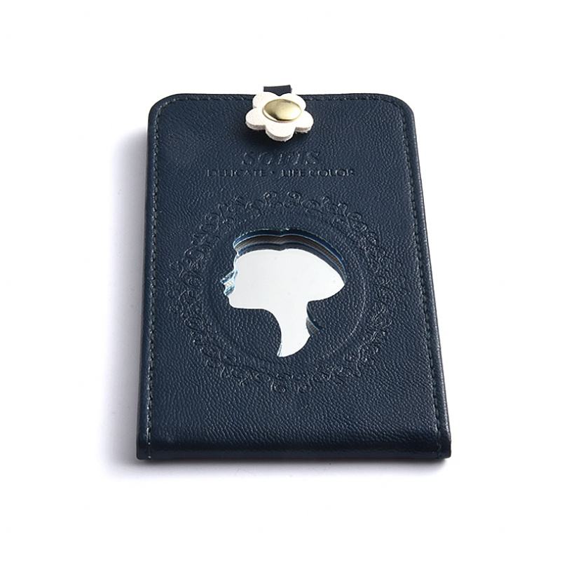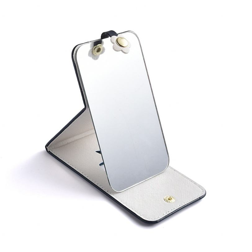 Unique Design PU Leather Figure Pattern Black Color Hollow Out Compact Mirror