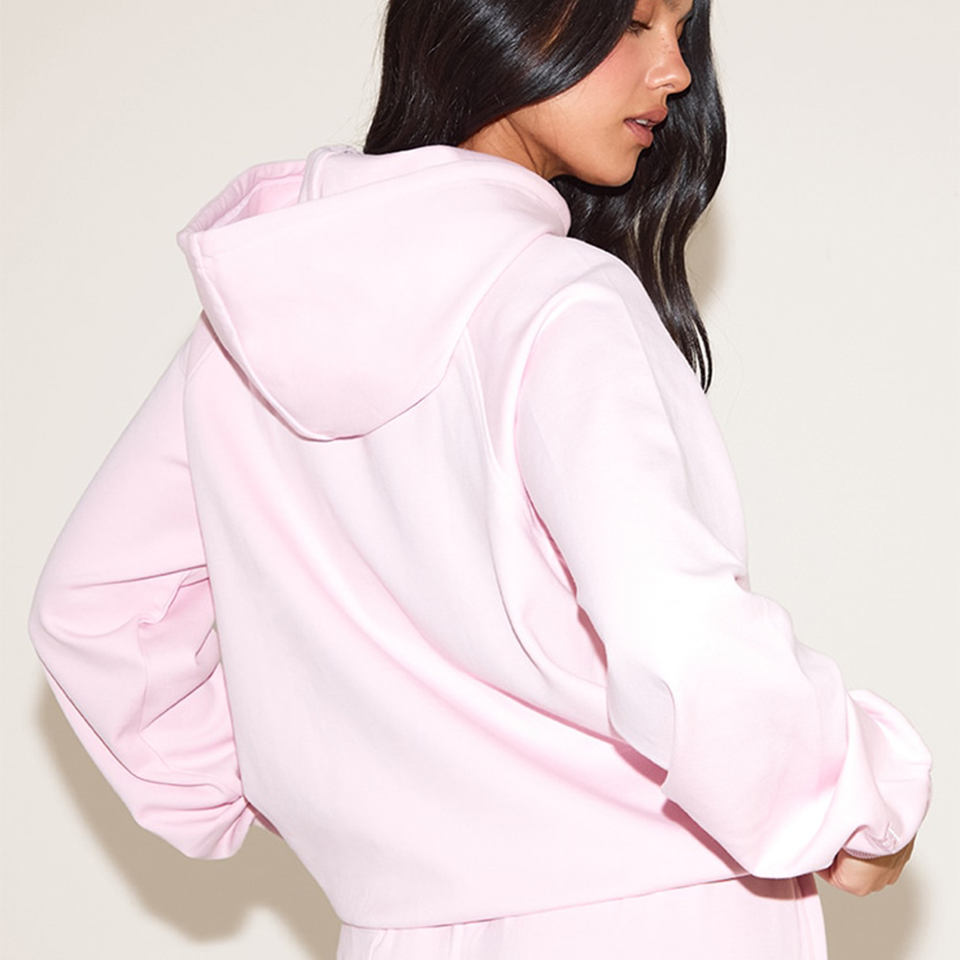 Unique Design Pink Embroidered Drop Shoulder Women's Oversize Hoodie Anti-Wrinkle And Breathable Hoodies Women Zip Up Hoodie