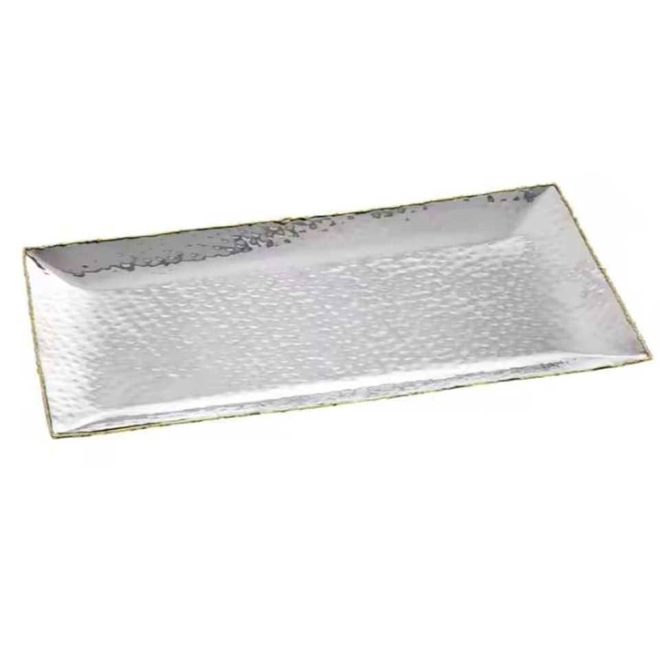 Unique Design Rectangle Shape Food Serving Tray High Quality Large Size Metal Tray With Gold Handles For Hotel Restaurant Supply