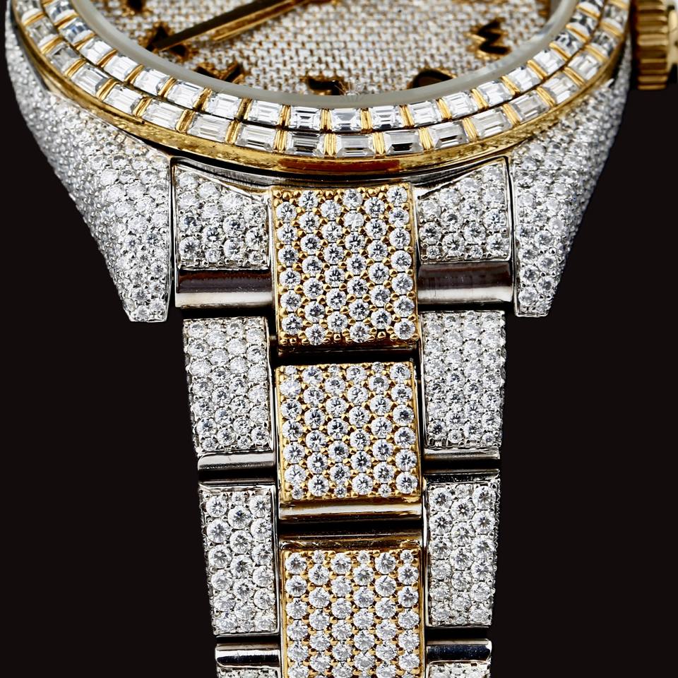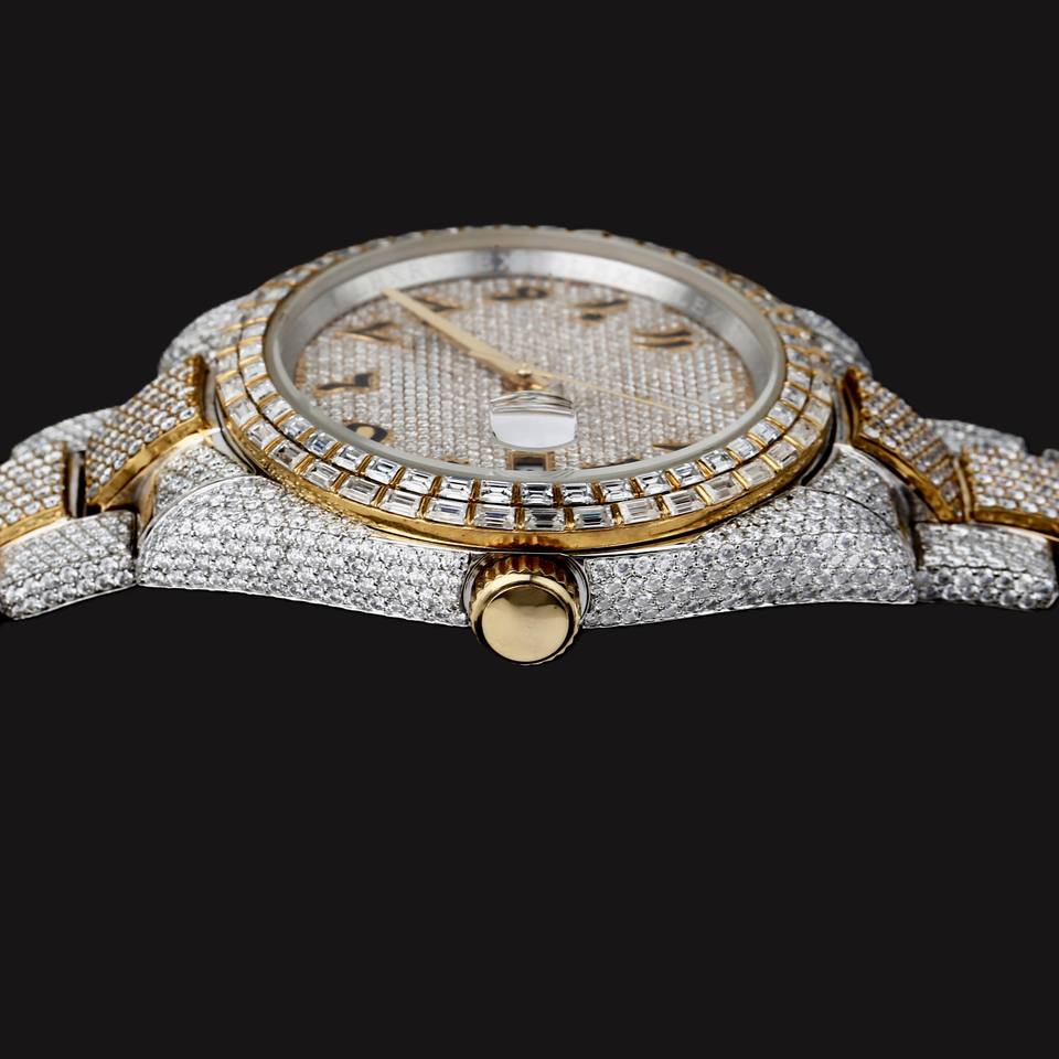Unique Design Round Case Baguette and Round Moissanite Diamond Fully Iced Out Two Tone Hip Hop Man's Stylish Luxury Watch