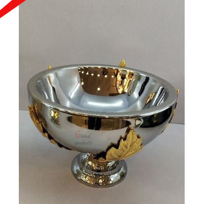 Unique Design Shiny Silver Finished Serving Bowl With Golden Leaf Design