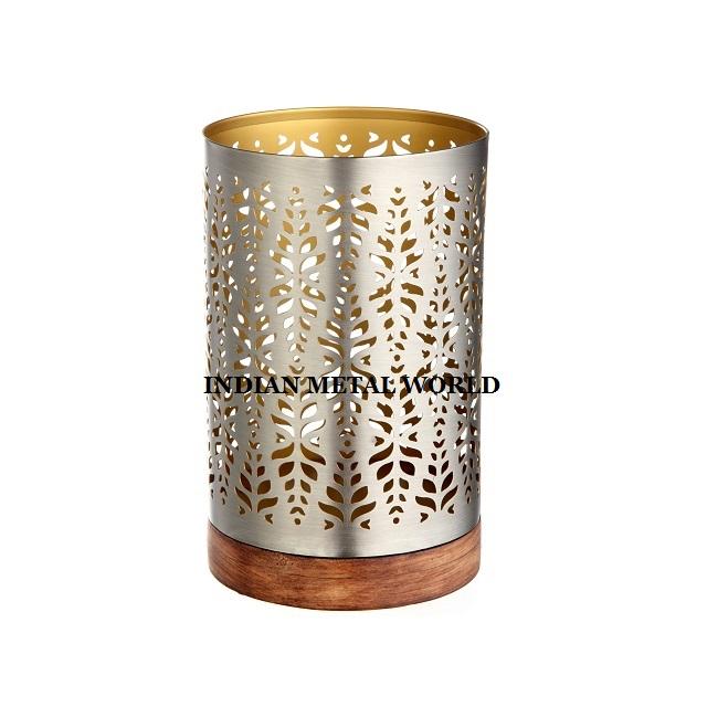 Unique Design Silver Candle Holder Premium Quality Round Shape Metal And Wood Votive Candle Stand Tealight Stand For Table Decor