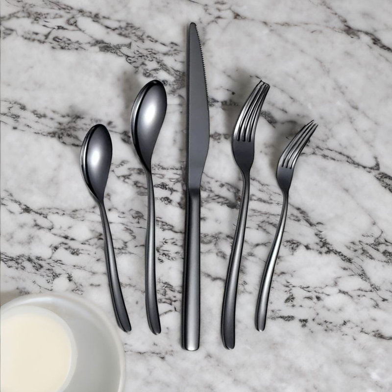 Unique Design Stainless Steel Mirrored Western Knife Fork and Spoon Cutlery Set Black Heavy Duty Cutlery Set