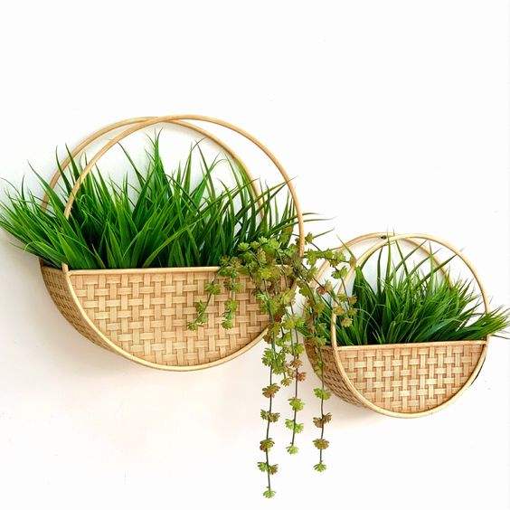 Unique Design Top Selected Natural Material Wicker Hanging Garden Pot Wall Hanging Planter for Balcony Home Decor