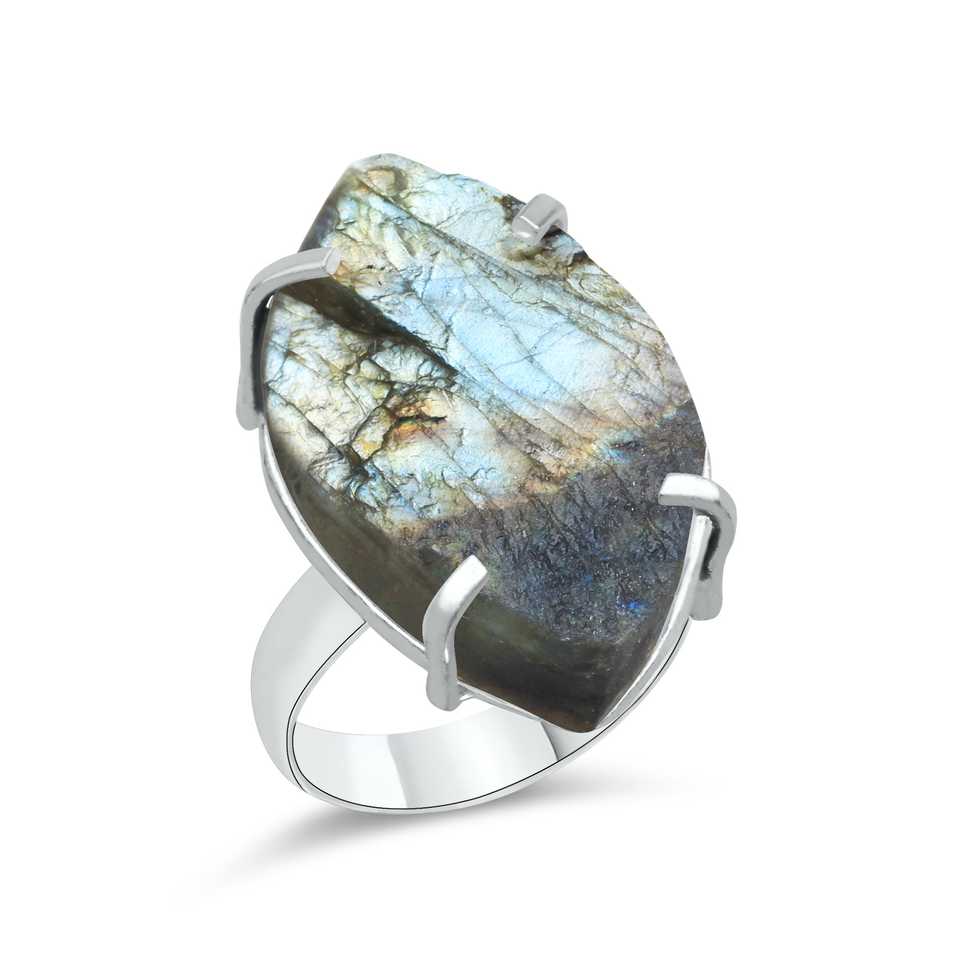 Unique Design Vintage Handmade Rings For Men & Women Hot Sale Good Quality Natural Labradorite Raw Cut Mixed Shape Gemstone