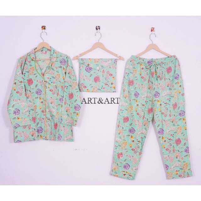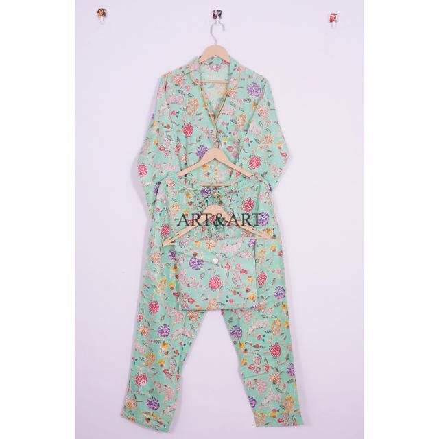 Unique Design Wear Pajama Set Cotton Pants Shirt Pajama Set Sleepwear Pajama set for Women Hand Block and Floral Printed PJ set