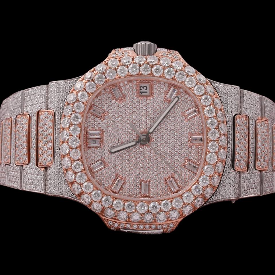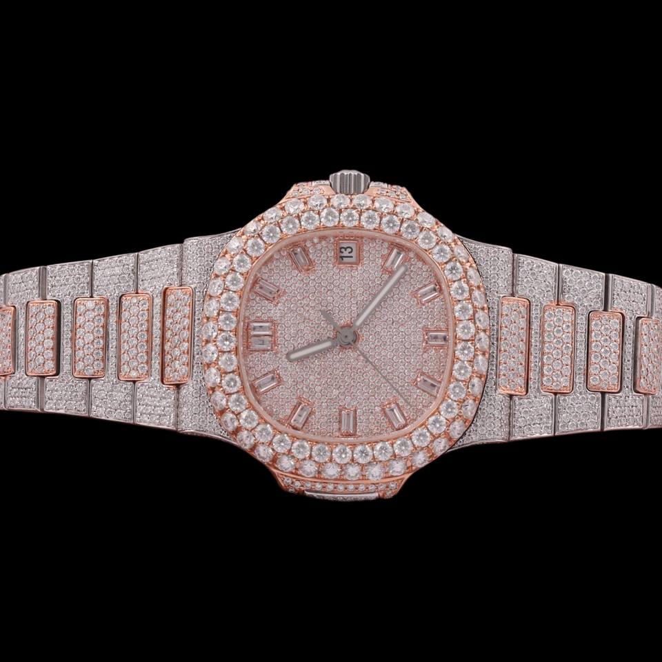 Unique Designer Two Tone Fully Iced Out Square Case Original Moissanite Round Diamond Premium Collection Man's watch