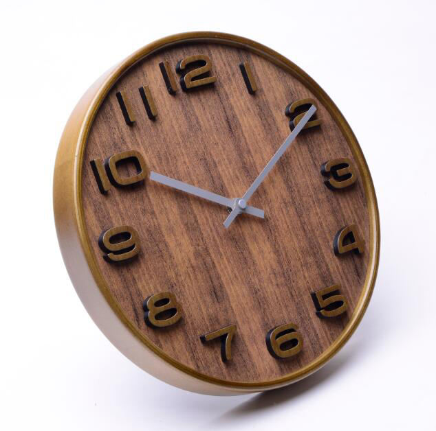 Unique Embossed 3D Numbers Quartz Antique Classic Wood Clock for Wall