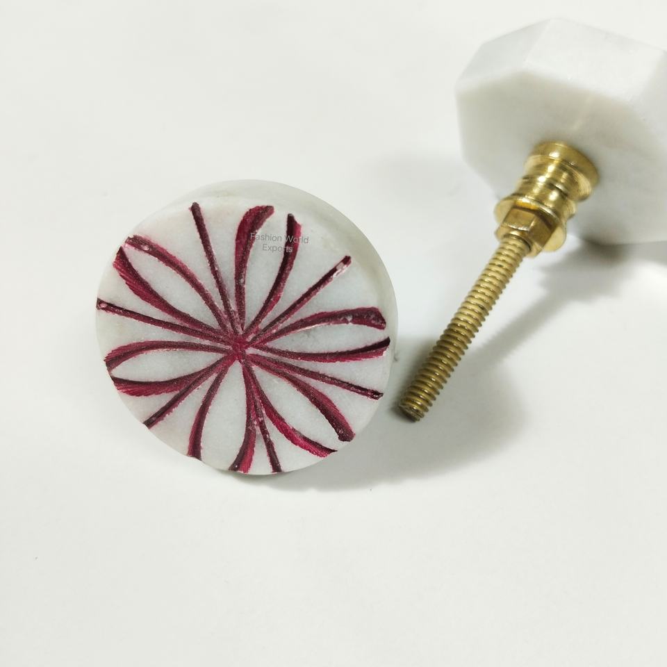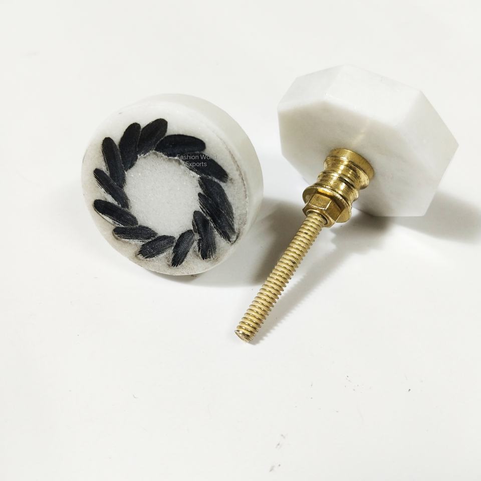 Unique Engraved Natural Marble Stone Door Knob Rustic Metal Hardware for Kitchen Furniture Wardrobe Cabinet Drawer Pull Handle