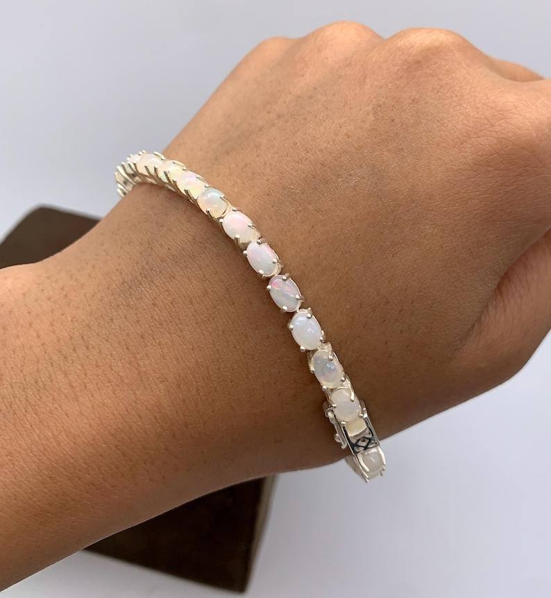 Keyword:Opal tennis 925 Silver Glowing Expansive Bracelet Crafted