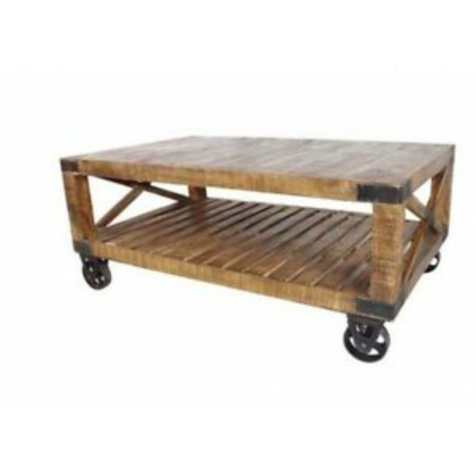 Unique European Solid Mango Wood Rectangle With Wheels and Shelf Smart Coffee Tables for Living Room and Apartments Use