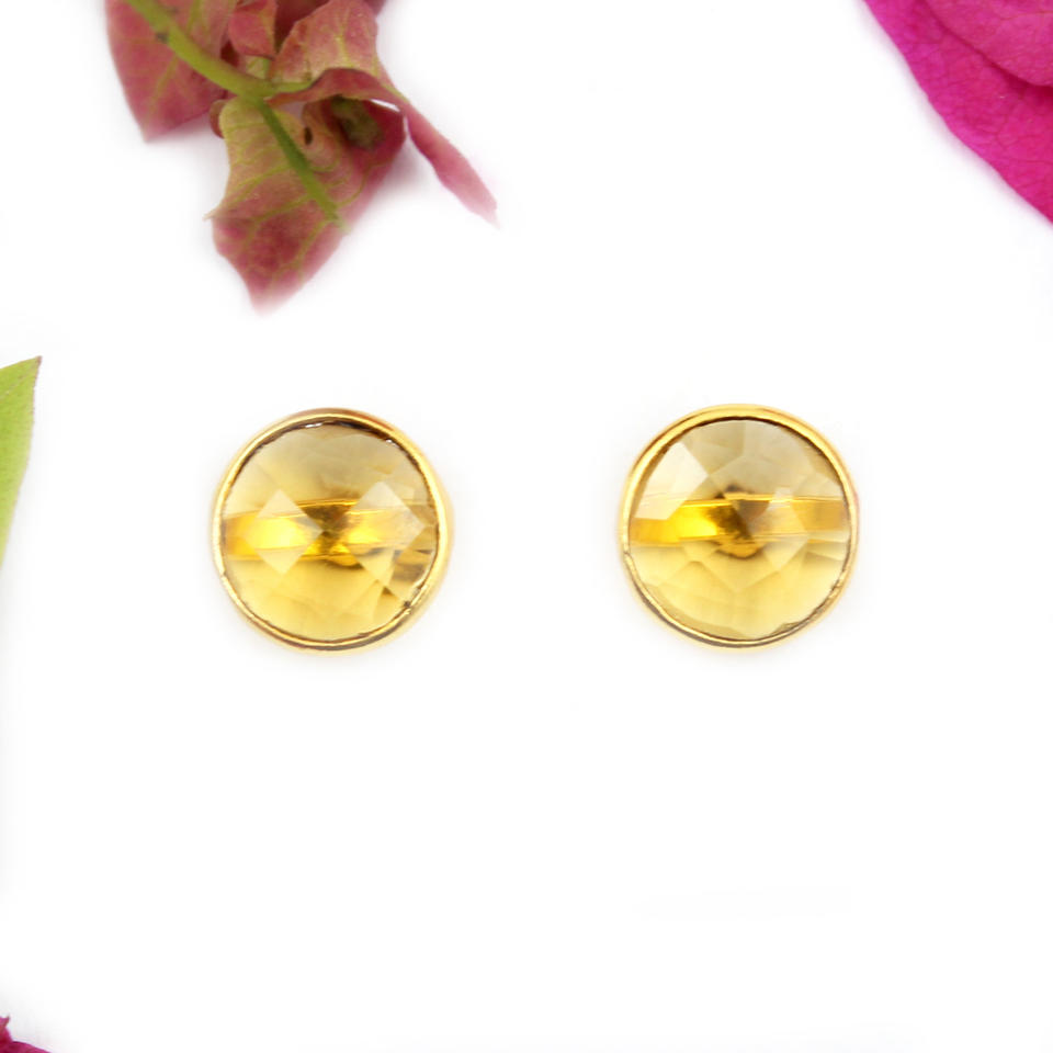 Unique Fashion Swiss Blue Hydro Quartz Round Shape 8 MM 24K Gold Plated Bezel Stud Earrings For Women Wholesale Jewelry Party