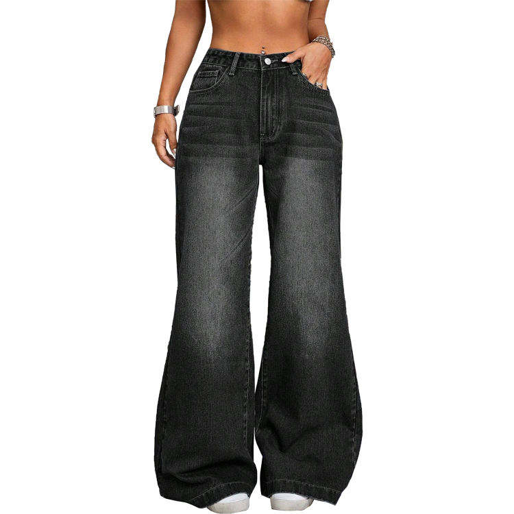 Unique Fashion Women Mid Elastic Waist Straight Regular Fit Washed Denim Ripped Casual Jeans