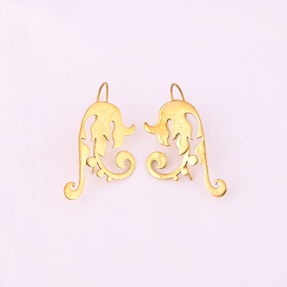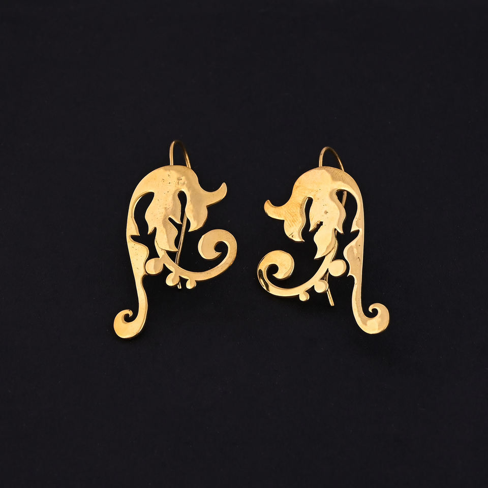 Unique Floral Intricate Gold Plated Fashion Earrings 45x25MM Size