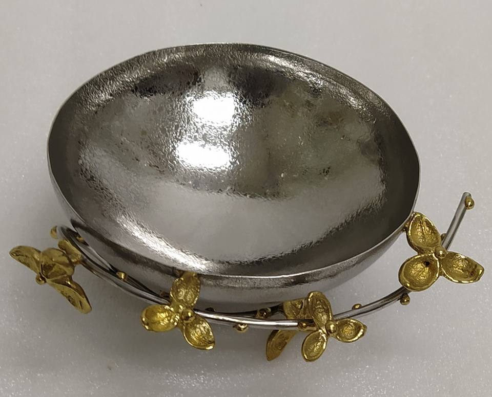 Unique Flower Design Serving Bowl Home Hotel Restaurants Dinnerware Tabletop Silver Gold Color Brass Steel Food Serving Bowls