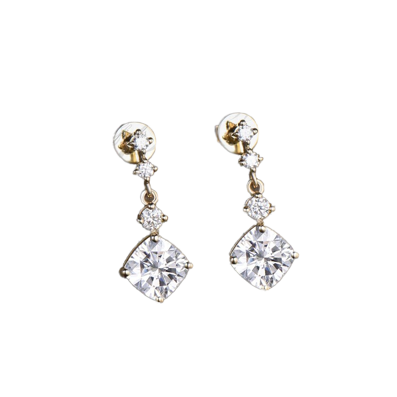 Unique Gold Plated Round & Cushion Cut Moissanite Gemstone Solid 925 Sterling Silver Drop Earrings Fine Jewelry At Factory Price