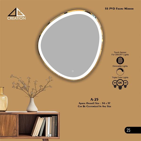 Unique Hammer Finish Adds Artistic Dimension To This Premium SS 304 PVD Mirror Frame Designed To Offer Lasting Appeal