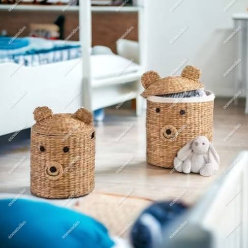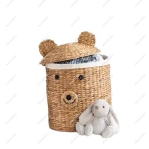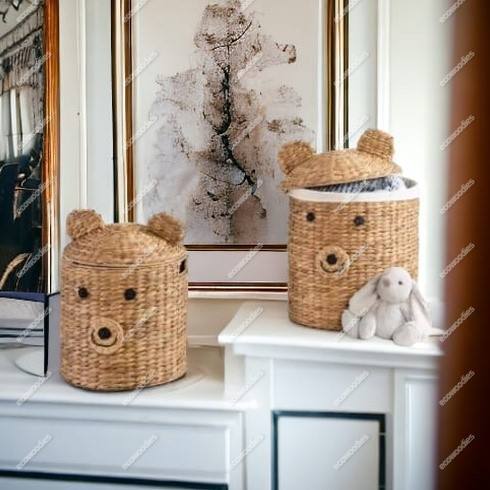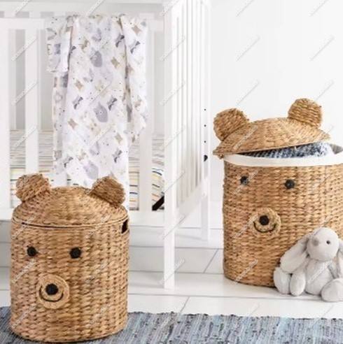 Unique Hand Woven Eco Friendly Cute Animal Shape Organizer Nursery Gift Storage Basket With Lid for Kids Toys Container