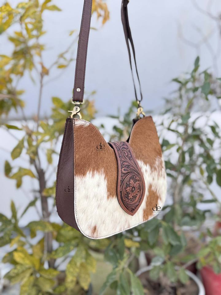 Unique Handbag Hand Tooled Leather Sling Bag Gypsy Boho Cowhide Fur leather New Arrival Handmade Western Stylish Multi Uses Bags