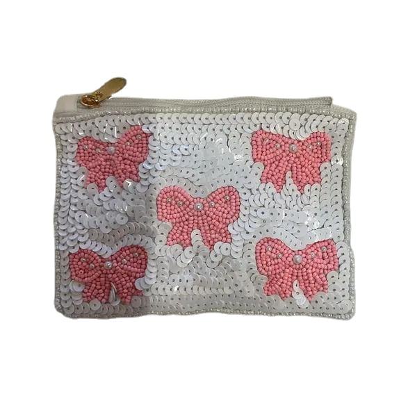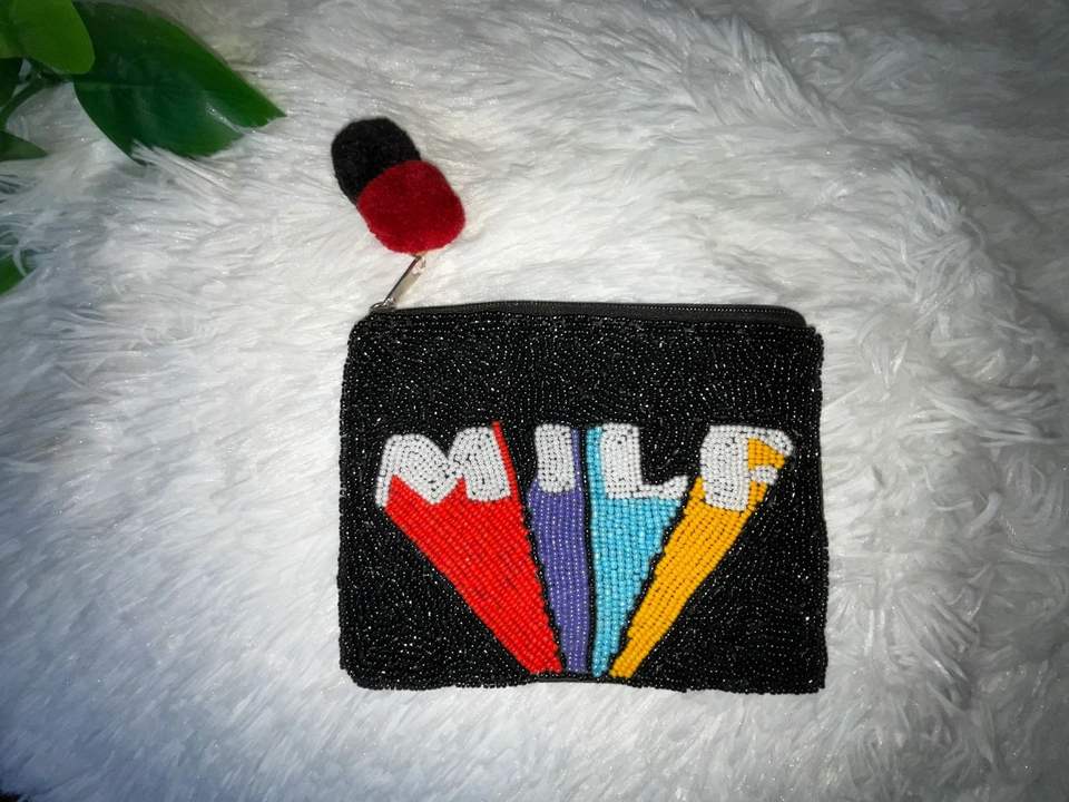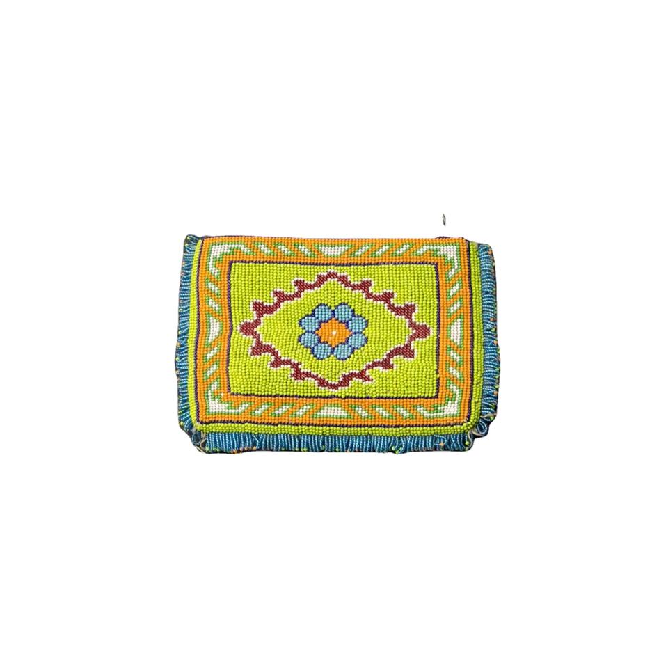 Unique Handcraft Mini Zipper Bag Flag With Heart Design With Beaded Embroidery And Fancy Statement Seed Bead Design From India