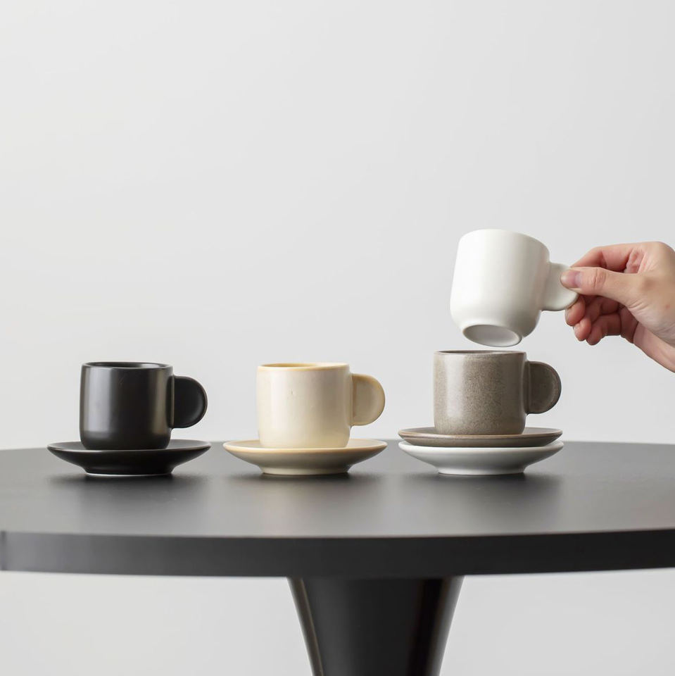 Unique Handle Small Ceramic Coffee Cup and Saucer 100ml Espresso Cup Set