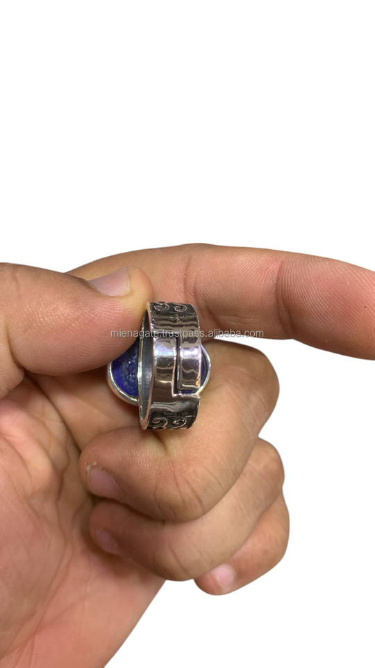 Unique Handmade Lapis Lazuli Men's Adjustable Gemstone Ring Jewelry 925 Sterling Silver from Bulk Indian Manufacturer waterproof