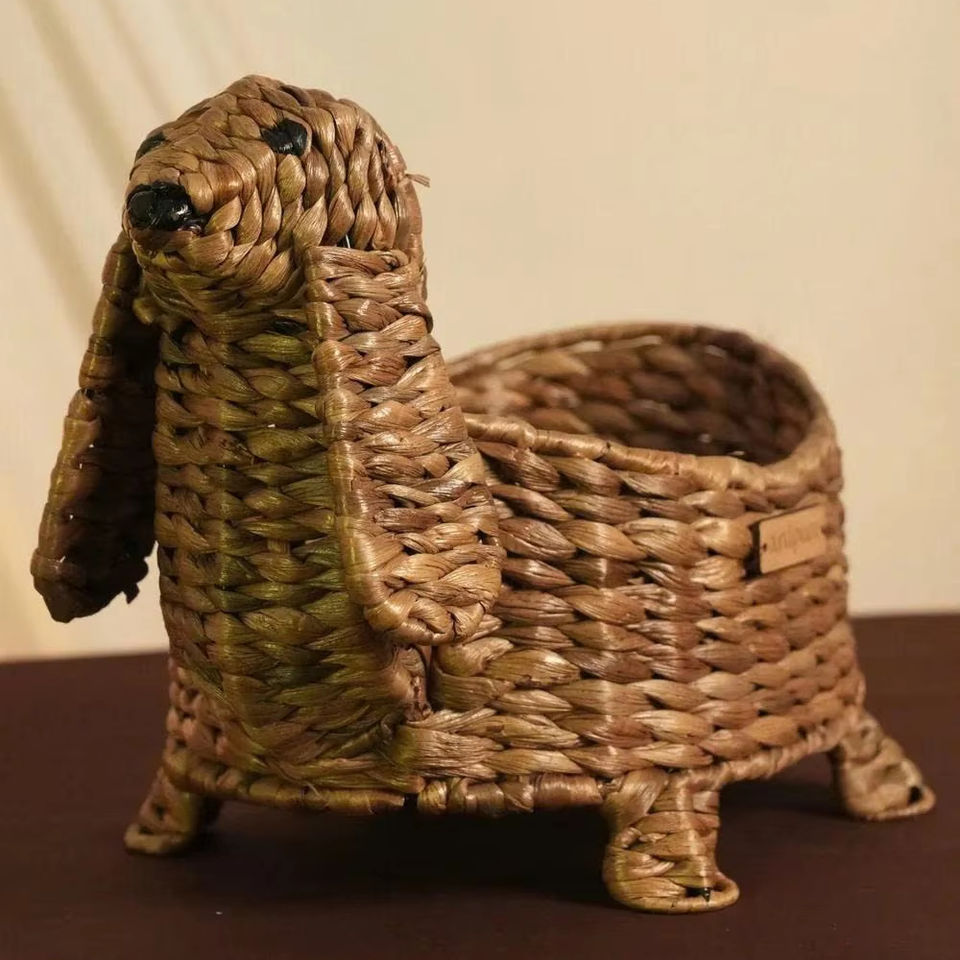 Unique Handmade Rattan Dog Shape Storage Basket Wicker Animal Design Organizer Bin Hamper For Kids Toy Nursery Decor Gift