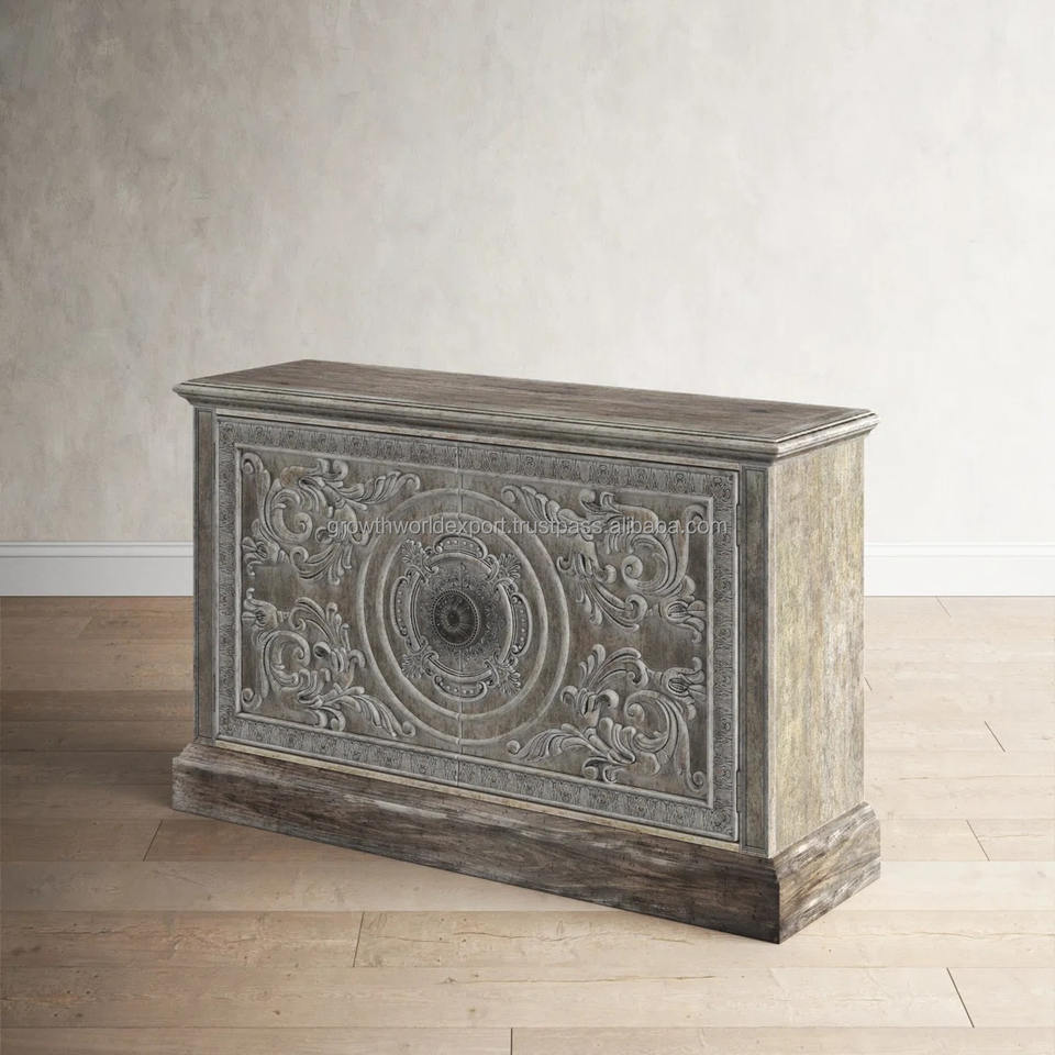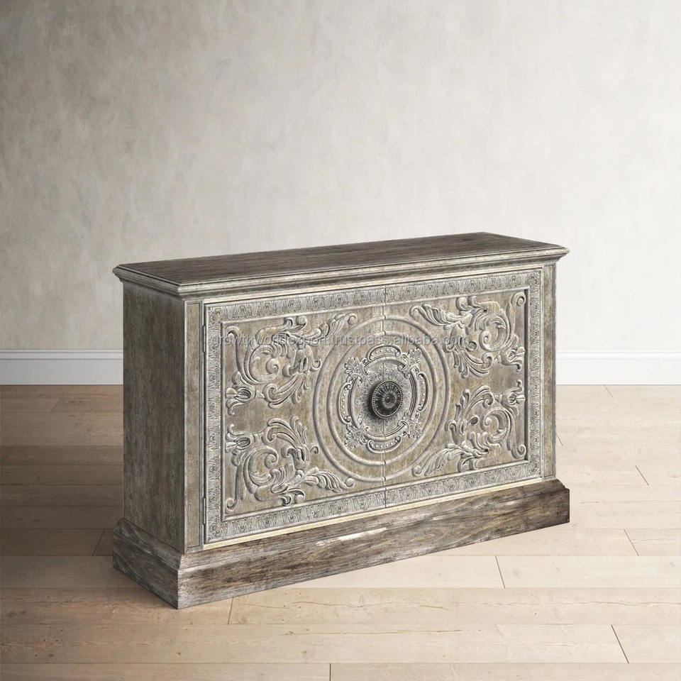 Unique Handmade Wooden 2-Door Carving Sideboard Cabinet Dining Buffet Storage Furniture for Hotel Villa Living Room