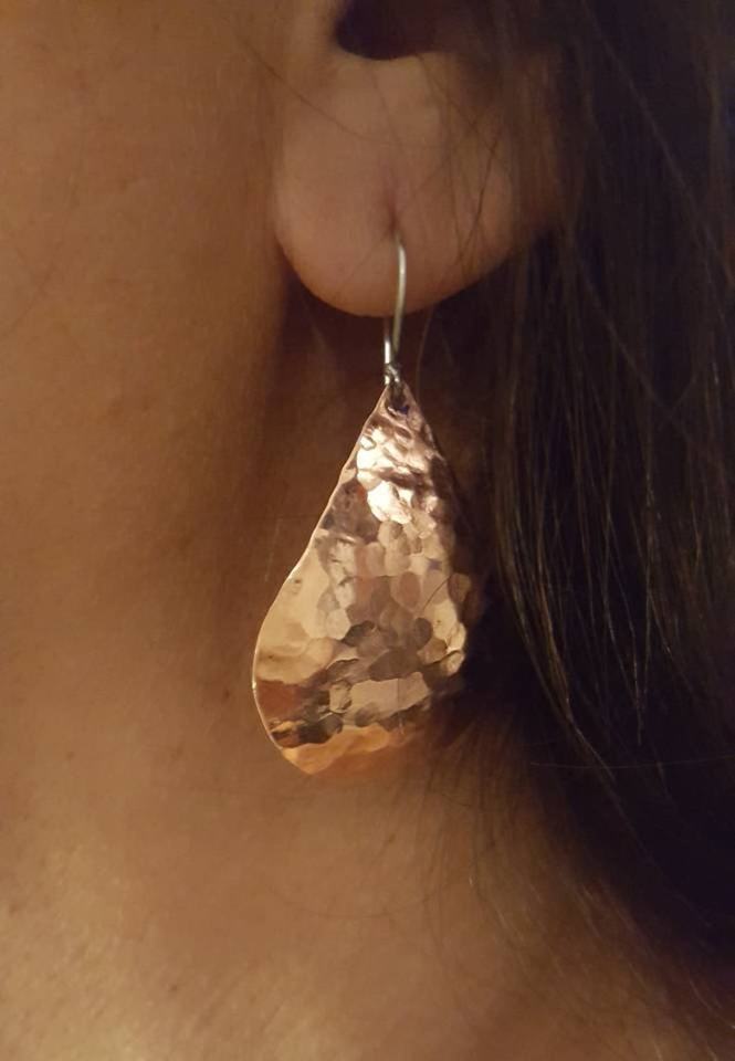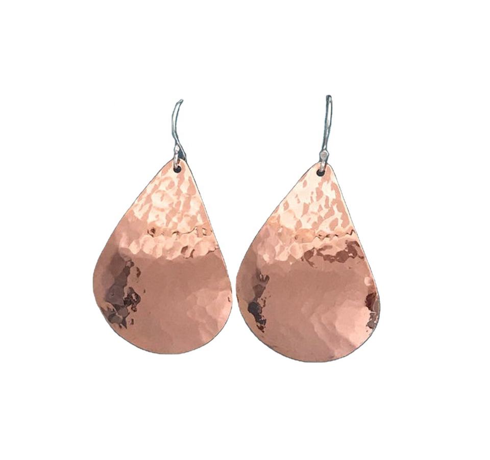 Unique Handmade Lead Free Hammered Copper Drop Earring Silver Hooks Metal Fashionable Heath Jewelry 2021