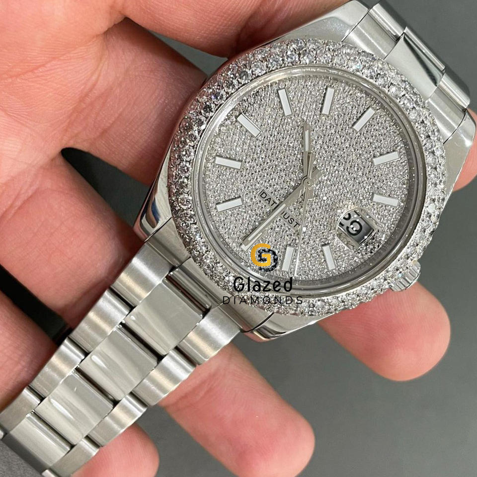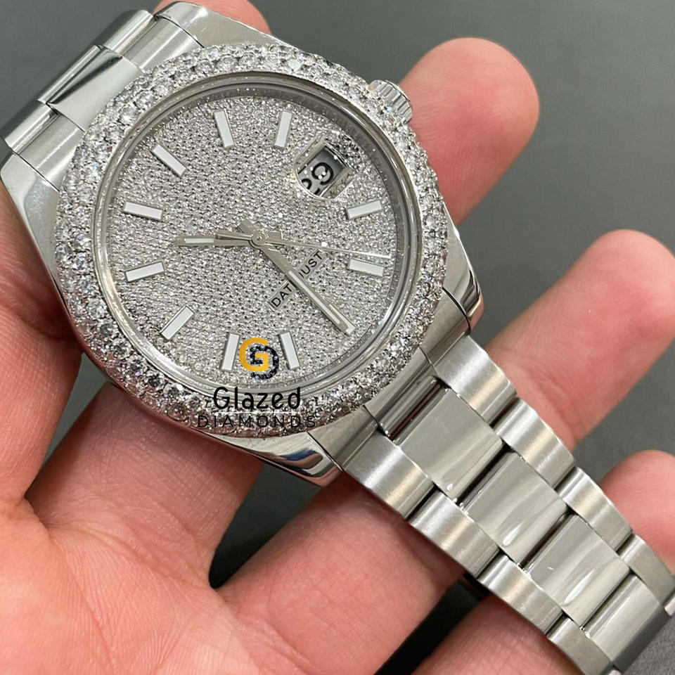 Unique Hip Hop Mechanical Analog Wrist Watch for Men with Round Brilliant Cut Moissanite Diamonds and Stainless Steel