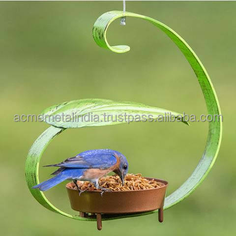 Unique House-Shaped Bird Feeder in Metal With Green Cast Finished Perfect for Stylish Outdoor Garden Bird Feeding