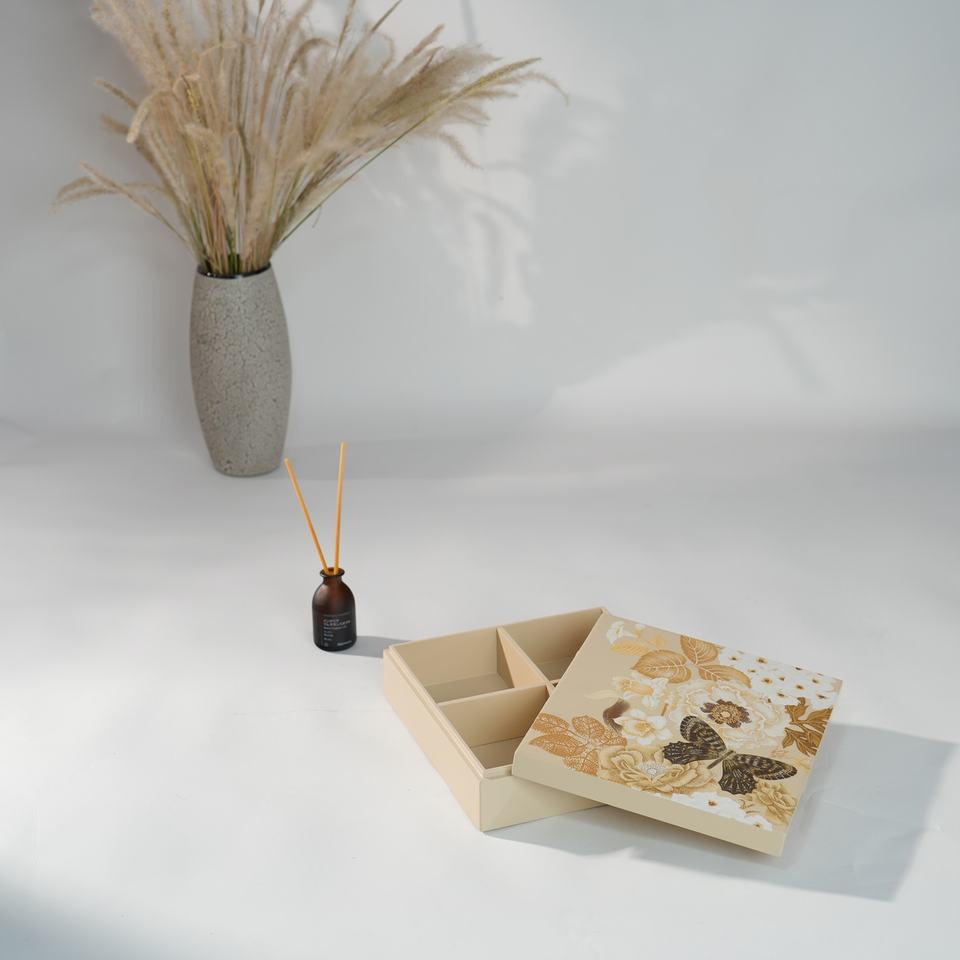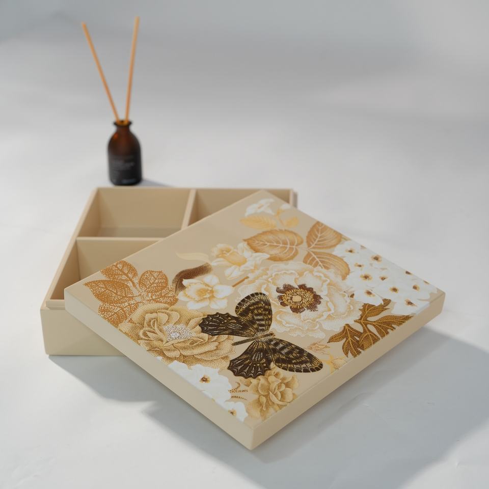 Unique Lacquer Box With Hand Painted Butterfly On Lid Durable Wood Body With Removable Dividers Customizable Use