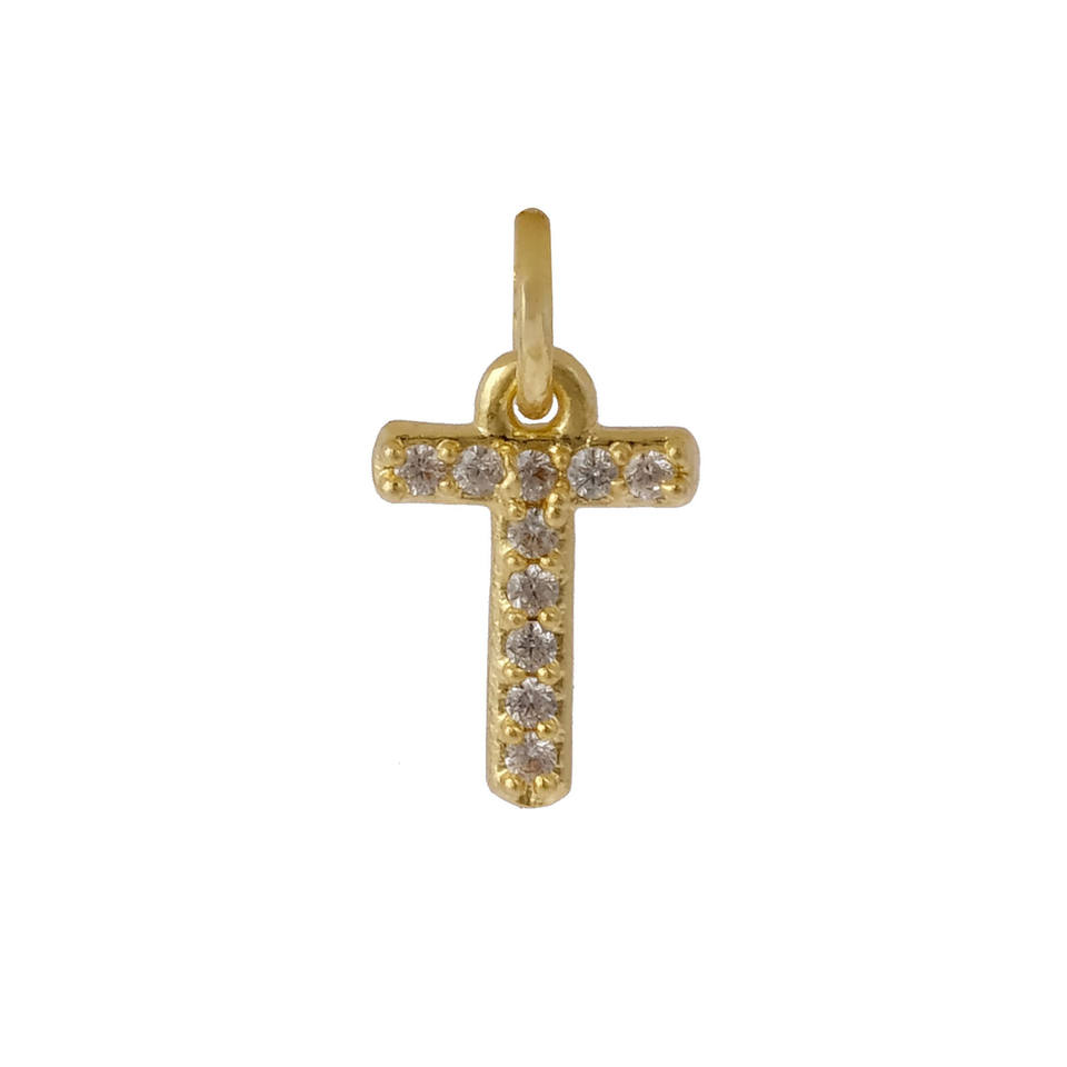 18K Gold Plated T Pendant Unique Initial CZ Alphabet Jewelry Trendy Personalized Brass Charm for Necklaces and Bracelets