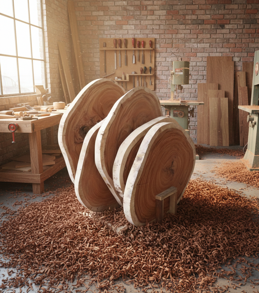 Unique Live Edge Suar Wood Modern Eco-friendly Cookie Slab Tabletop Authentic Grain Patterns Solid Build Natural Artistic Beauty