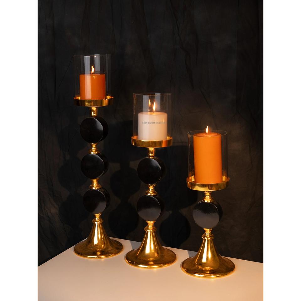 Unique Look Metal Pillar Candle Holder With Glass Chimney for Wedding Event Parties Decor Gold/Black Candle Pillar