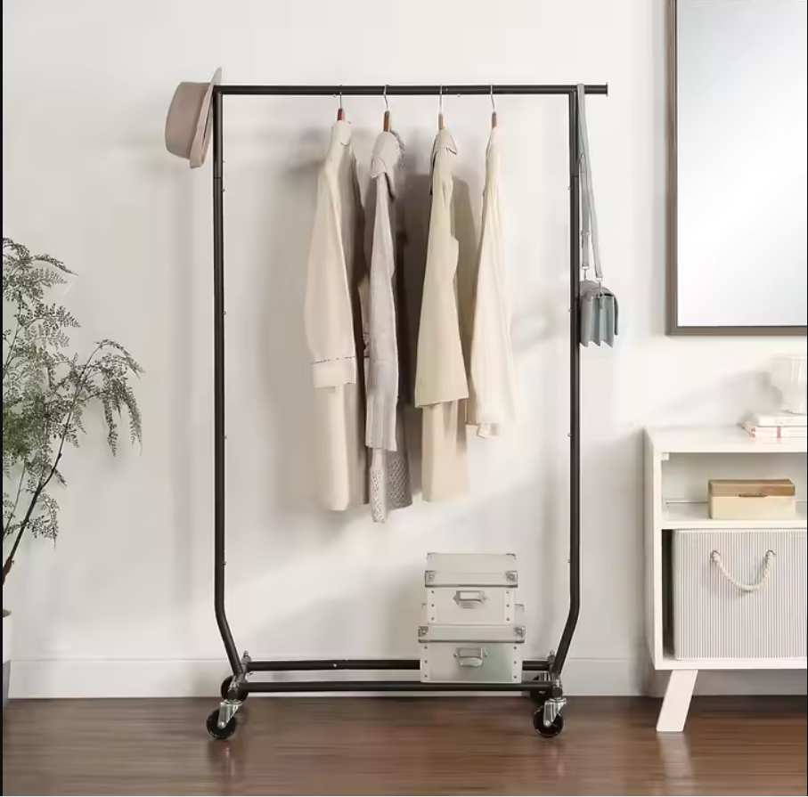 Modern Luxury Rolling Metal Rack Factory Custom Large Boutique Double Rod Shoe Storage Garment Rack Hot Bathroom Living Room