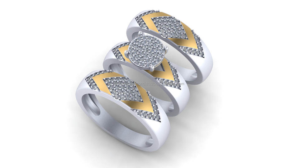 Unique Luxury Triple Row Diamond Stacking Ring Set 925 Solid Silver Gold Plating Moissanite Trendy Fashion Stylish Pave Design