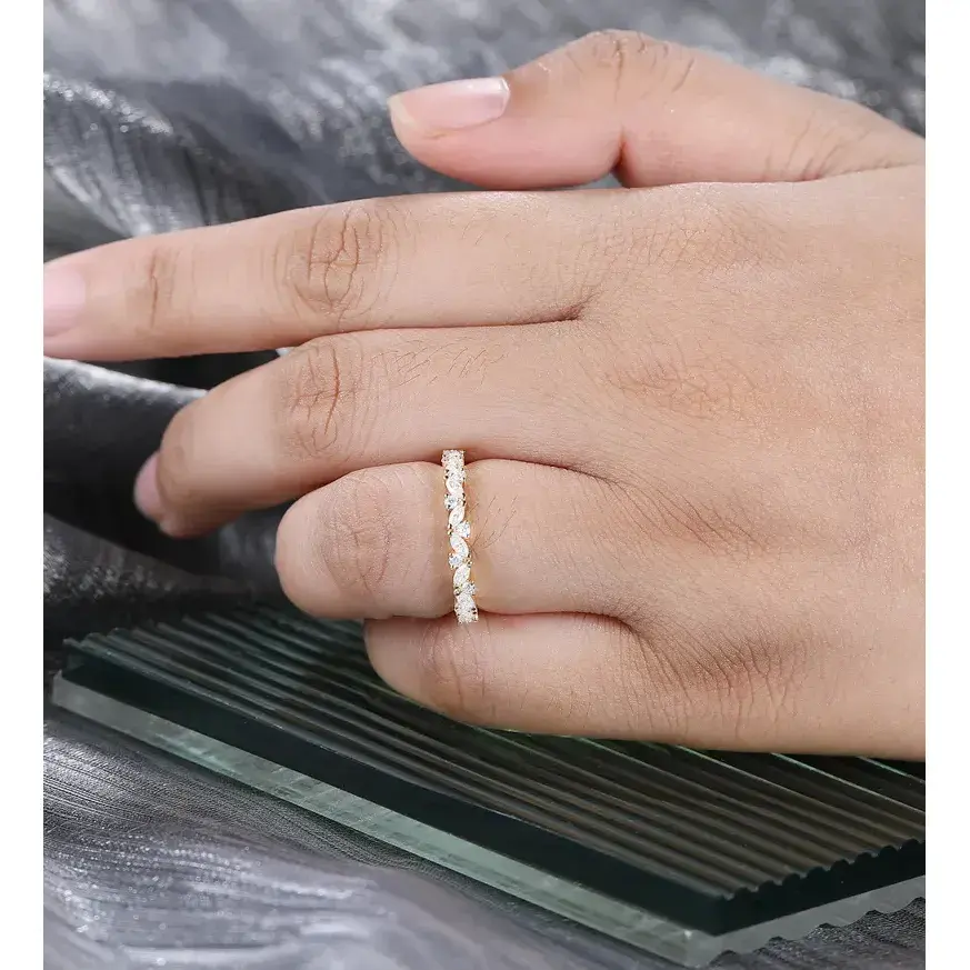 Unique Marquise Half Eternity Engagement Ring with Moissanite Diamond For Wedding Gift