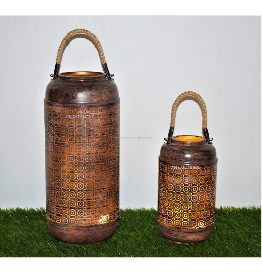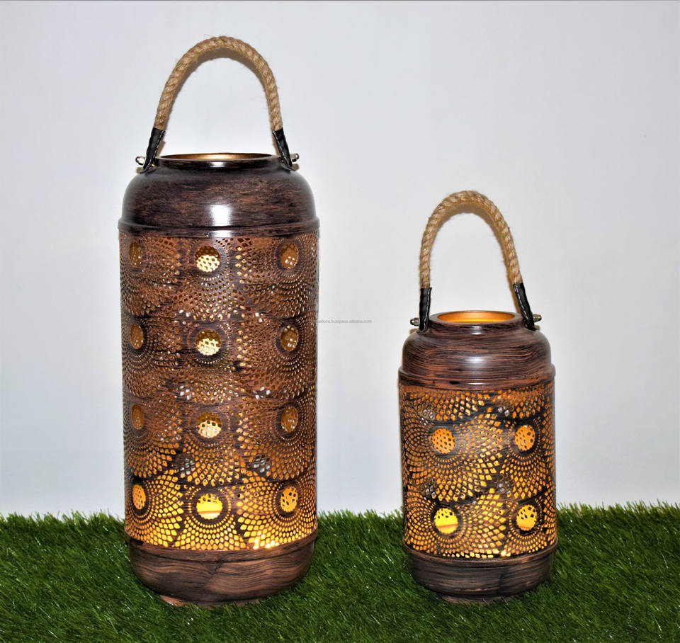 Unique Metal Candle Lantern Jar Decorative Christmas Night Light for Tabletop or Home Display