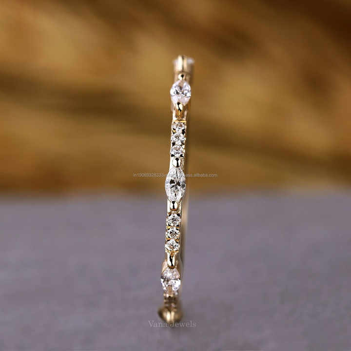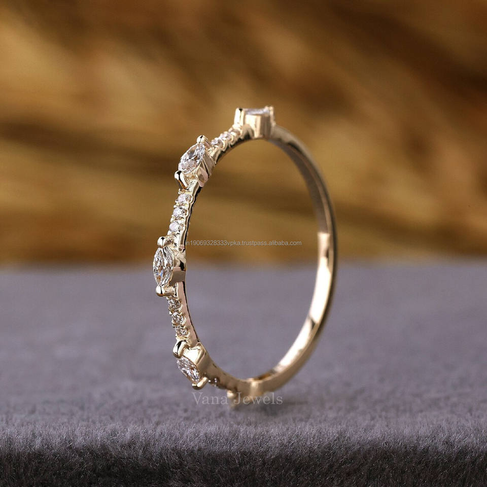 Unique Minimalist Diamond Marquise Band Half Eternity Wedding Ring for Women 14k Solid Gold or Platinum Lab Grown Diamond Ring