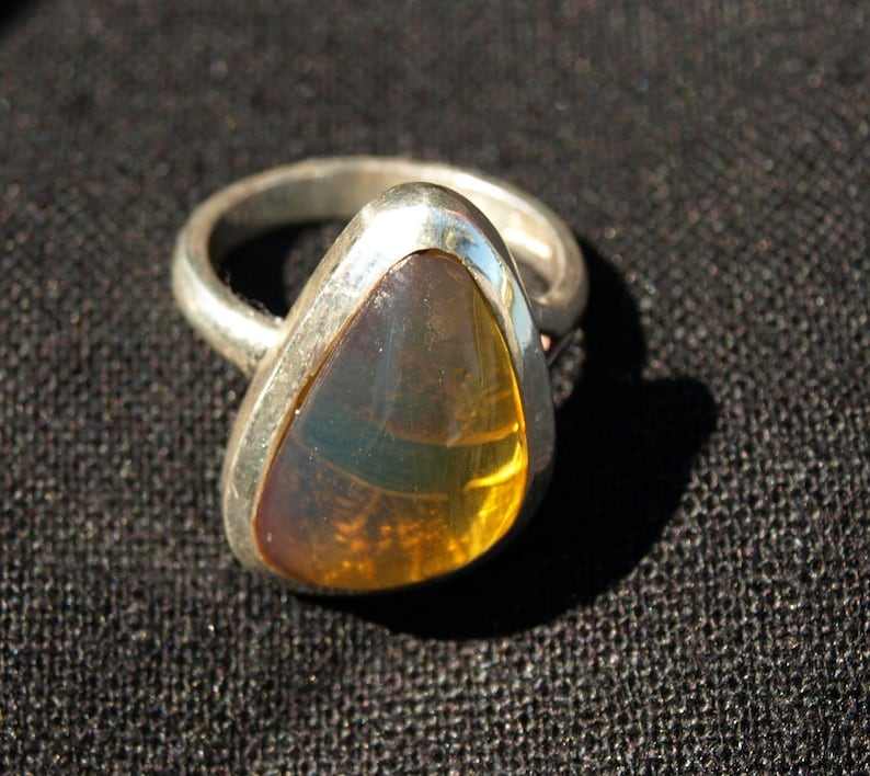 Key words:Unique Natural Dominican Green Amber Ring Sterling Silver