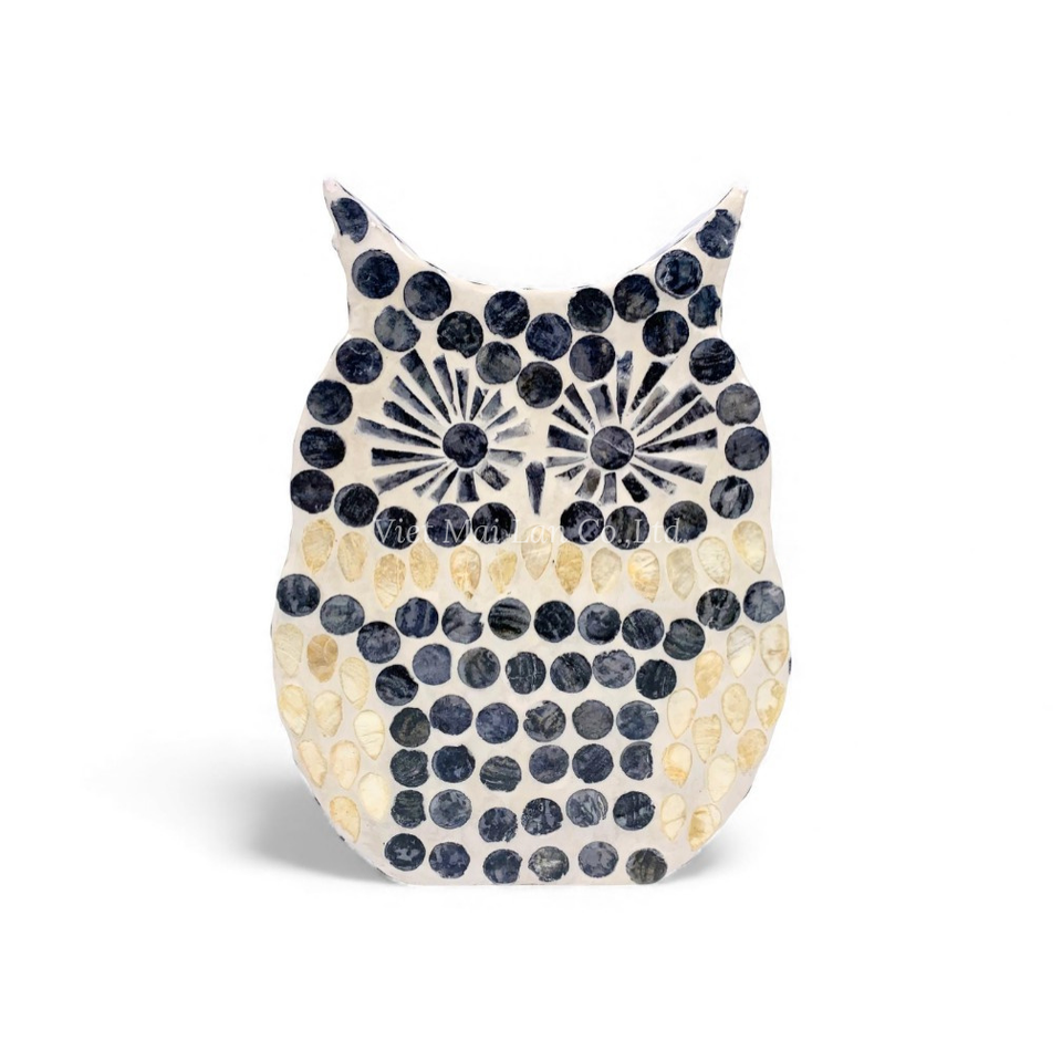 Unique Natural Mother of Pearl Halloween Owl Figurine Handmade Decorative Item for Spooky Table Display from Vietnam