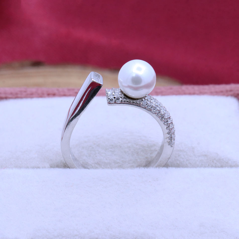 Unique Pattern Freshwater Pearl With Cubic Zircon Solid Silver Ring for Women 925 Sterling Silver Wholesale Jewelry Manufacturer