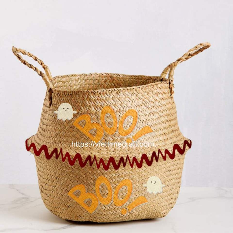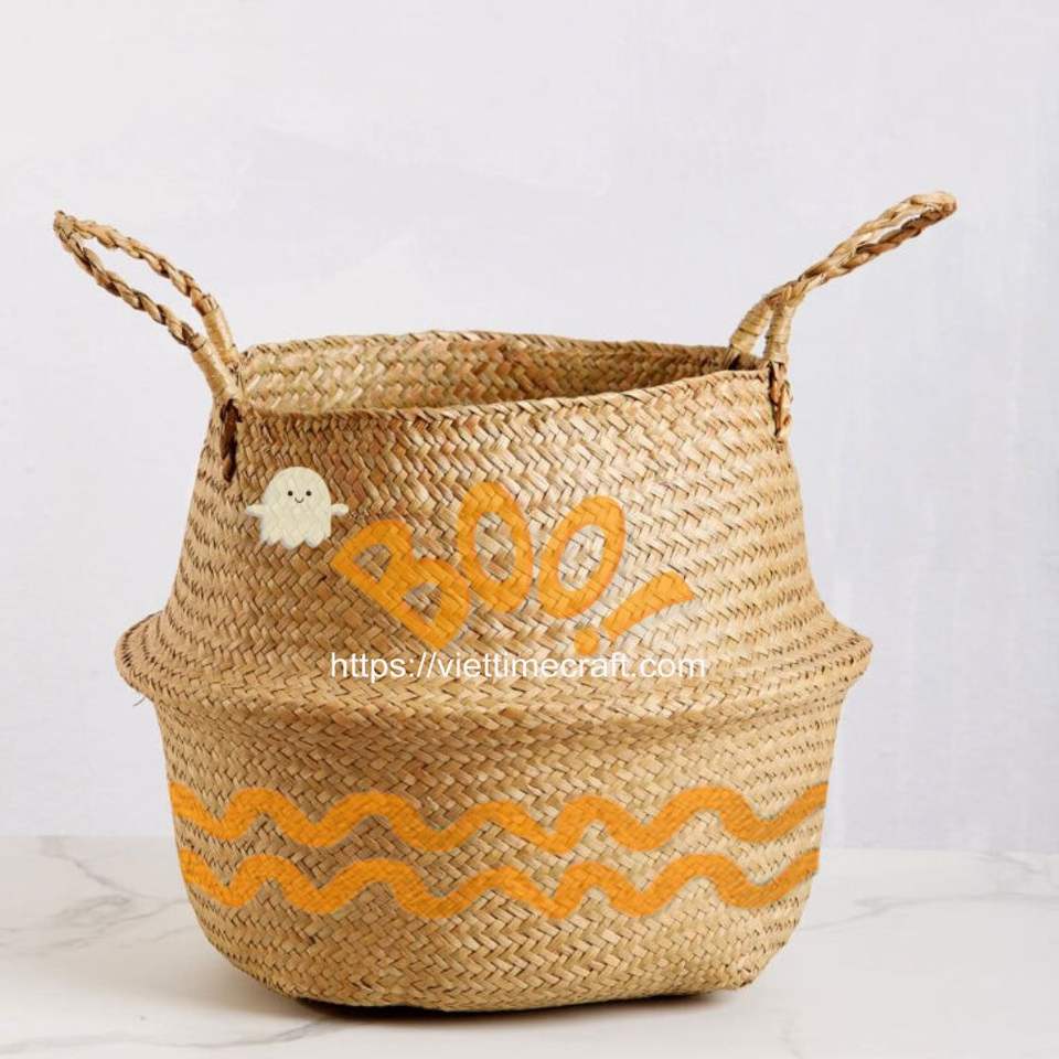 Unique Pattern Hallowen/ Christmas Design Seagrass Storage Basket, Foldable Basket Home Decoration for Holiday Wholesale