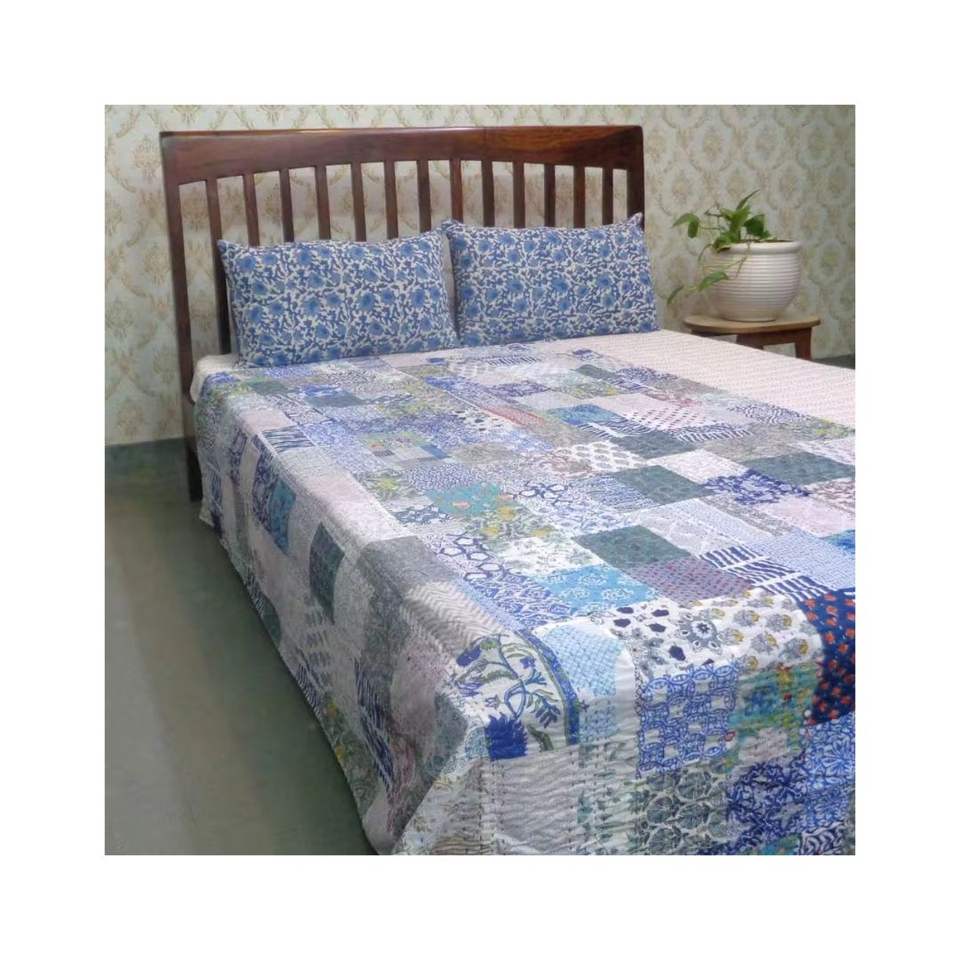 Unique Pattern Kantha Quilt Twin Size HandBlock Printed Cotton Patchwork Organic Lightweight Boho Chic Fair Trade Quilt for Sale