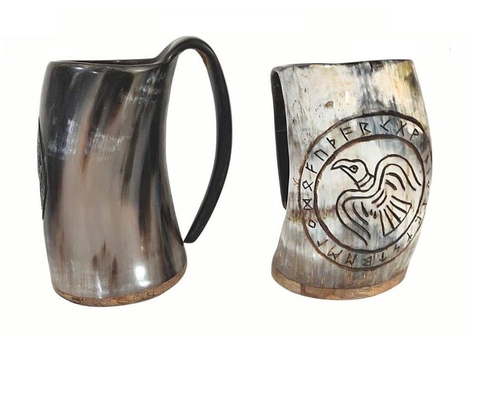 Unique Pattern Luxury Finish Handcrafted Horn Mug Set of 2 Dishwasher Safe Horn Mug Perfect for Bars Clubs Party Drinkware Used