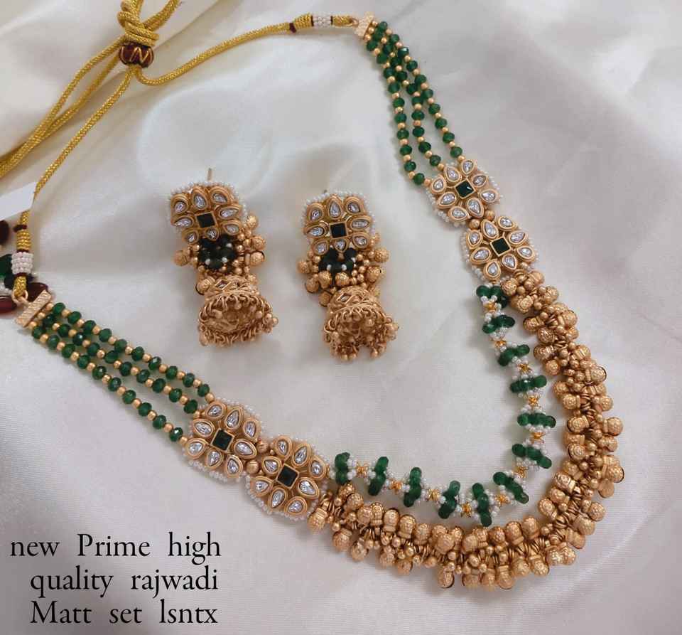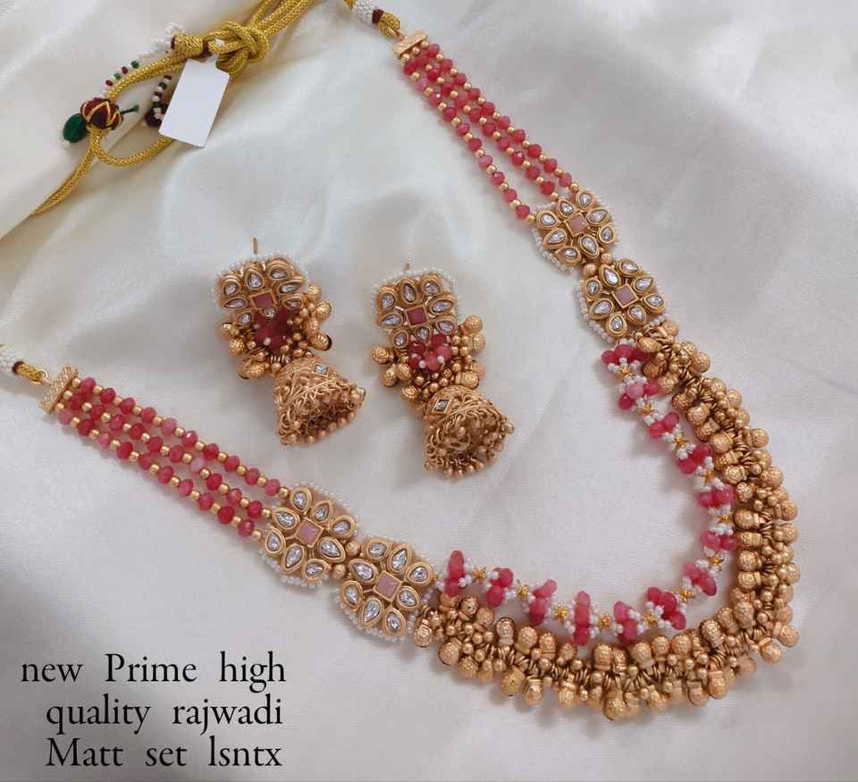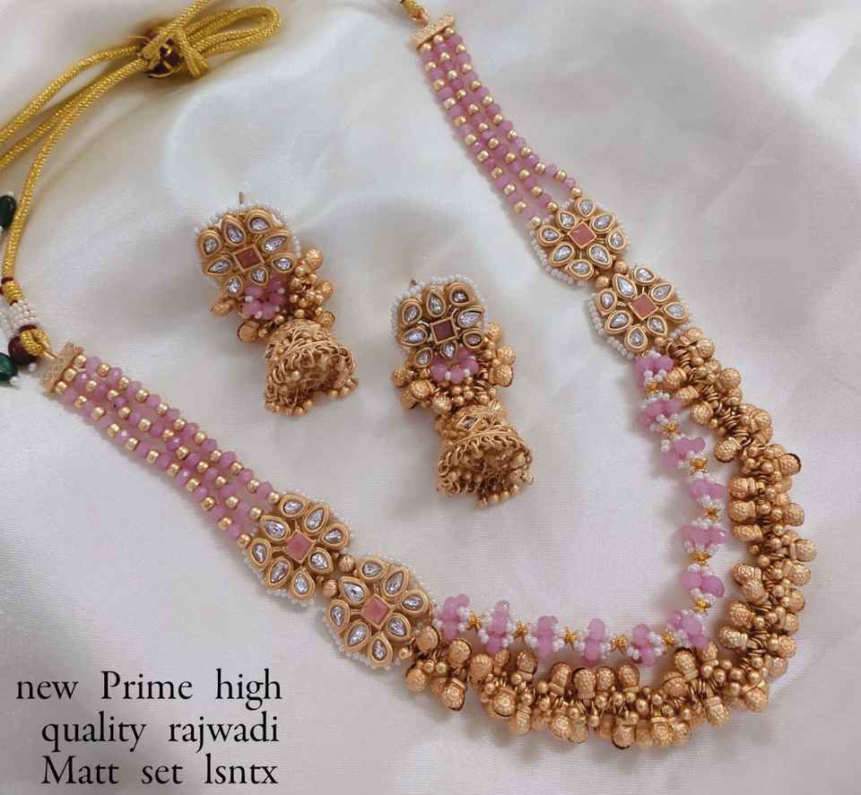 Unique Premium Quality Collection Pearl Work & Kundan Studded Pearl Drop Copper Long Necklace Jewellery With Earring Set Women