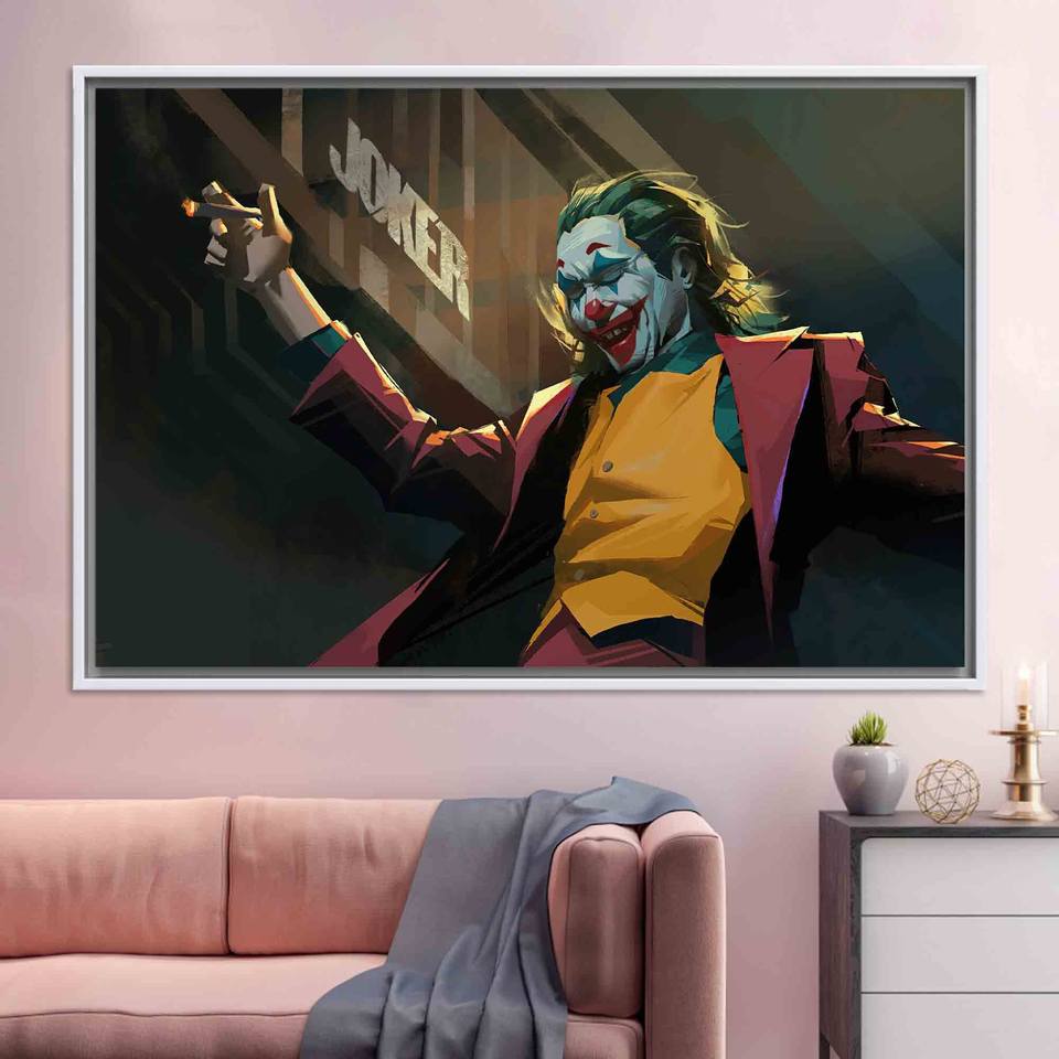 Unique Printed Canvas Artwork - Abstract Joker Design for Modern Decor,WHITE FRAMED CANVAS